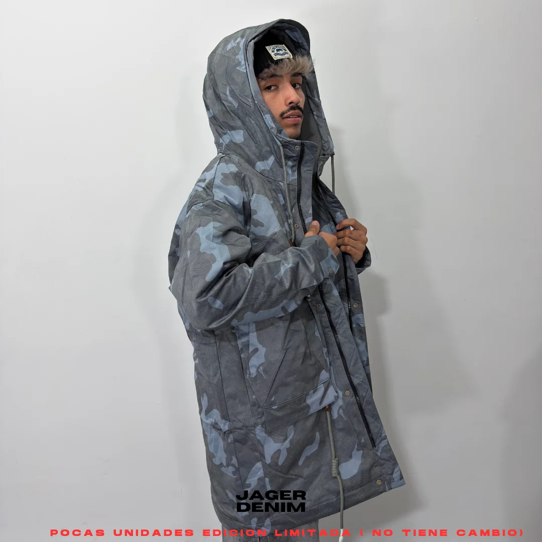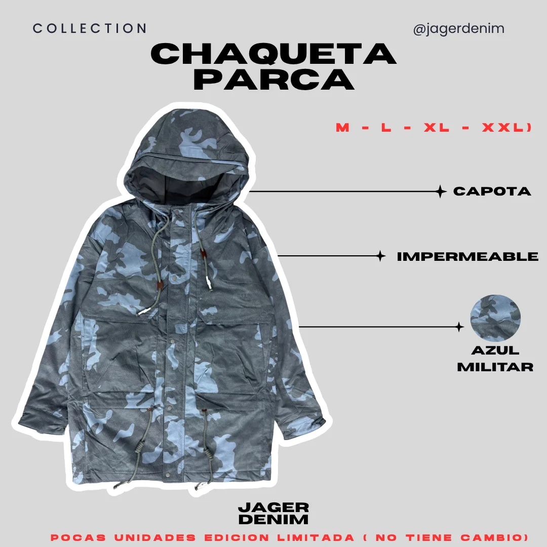 Chaqueta parca impermeable azul militar