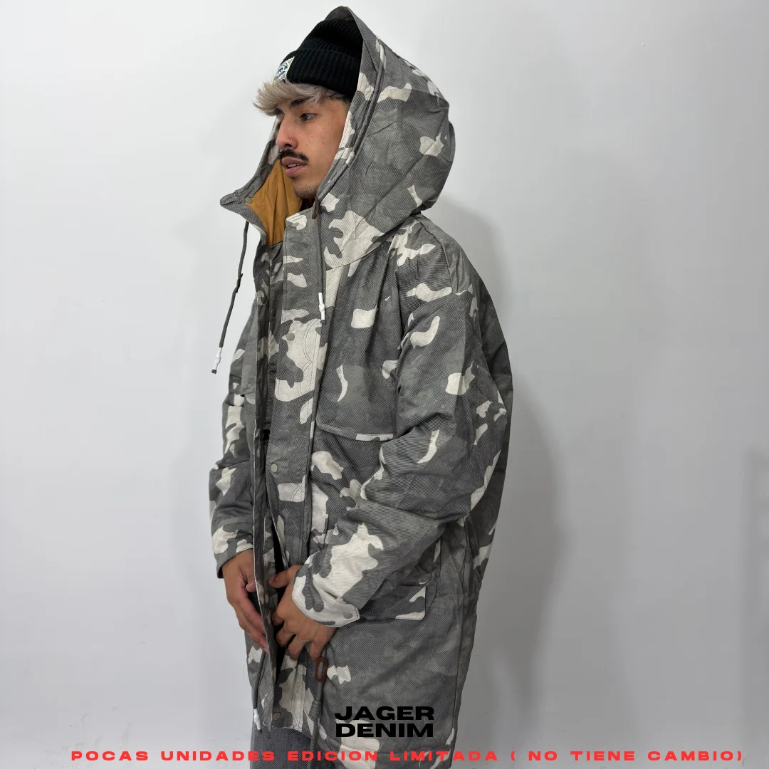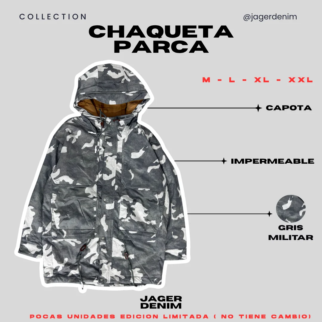 Chaqueta parca impermeable gris militarChaqueta parca impermeable gris militar